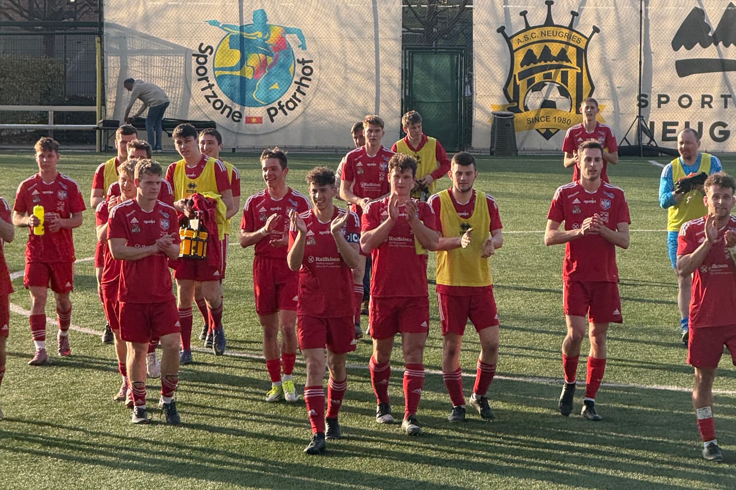 Ultens Spieler rund um Kapitän Luis Gruber bedanken sich bei den zahlreichen Ultner Zuschauern am Bozner Pfarrhof.